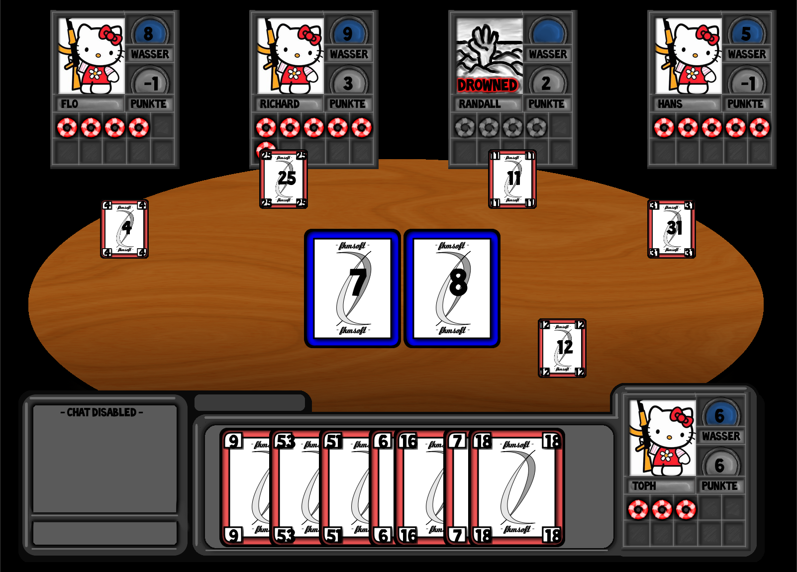- Spieler mit niedrigstem Wasserstand ermitteln +1 Punkt;